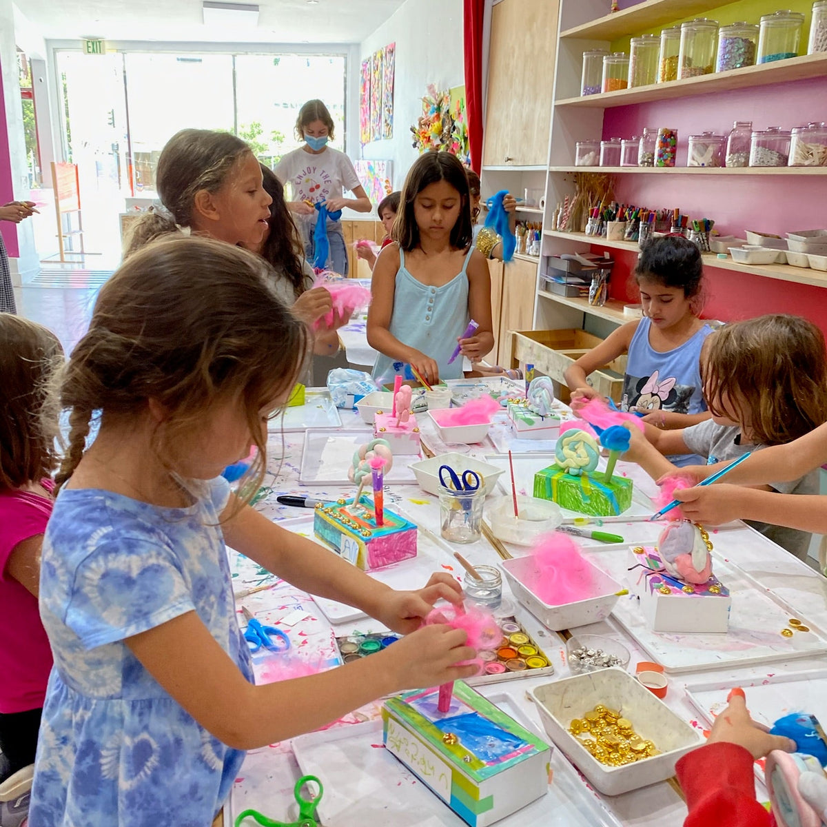 Your child will spend four hours at the studio creating and exploring signature PMC process art projects using tons of different art-making materials. We can't wait to see what they create!
